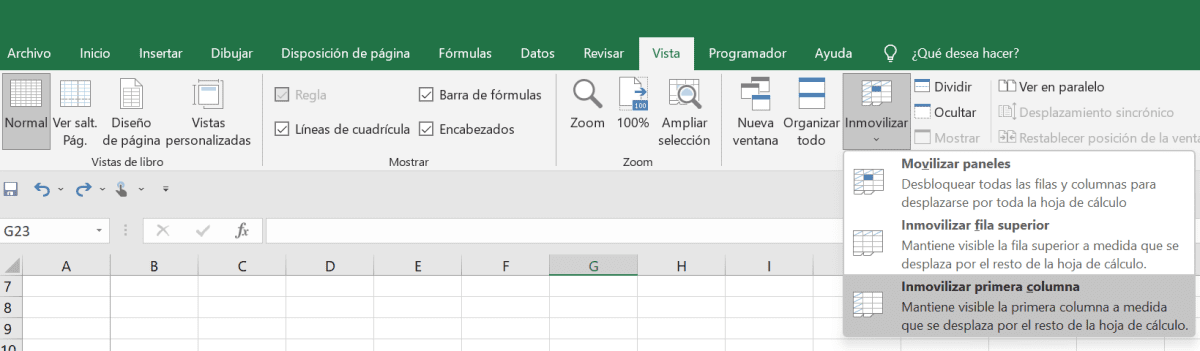 Excel permite fijar columnas para que la columna elegida esté siempre visible cuando nos desplazamos hacia la derecha en una hoja de cálculo.
