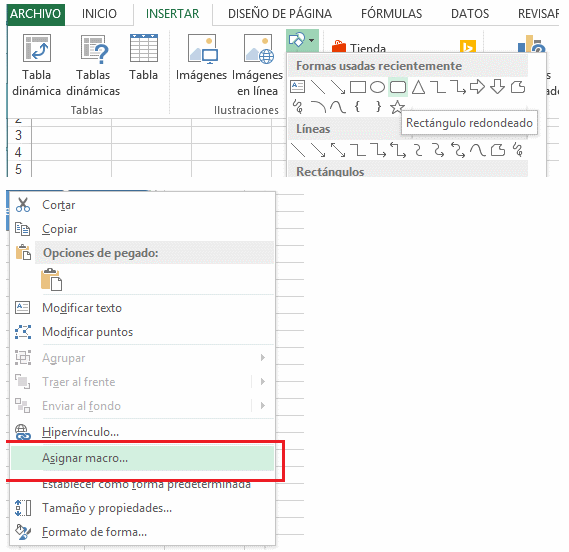 Para ejecutar la macro, lo ideal es insertar una autoforma en la Hoja1 y luego asignar la macro que acabamos de crear (clic derecho sobre la Autoforma y seleccionar la opción Asignar macro: