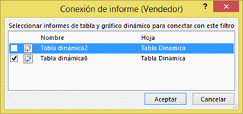 Y en la ventana aparece el listado de todas las tablas dinámicas que tengamos y las que no estén conectadas con la segmentación no estarán activadas: