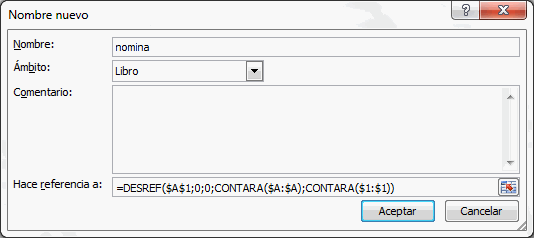 Para crear un rango dinámico, formulamos las referencias y con ello definimos un nombre para nuestro rango dinámico.
