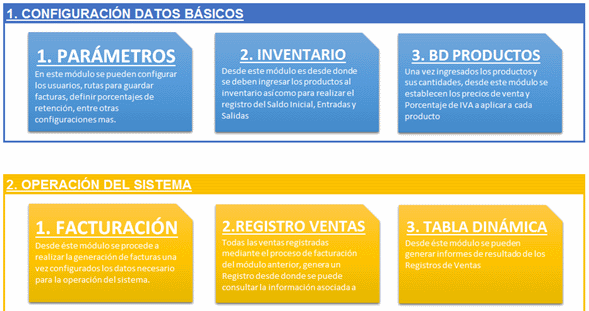 Hemos desarrollado una plantilla en Excel para facturar que complementa la anterior plantilla diseñada para llevar el control de inventarios, de manera que se ha integrado a está permitiendo descargar (actualizar) el inventario una vez se factura.