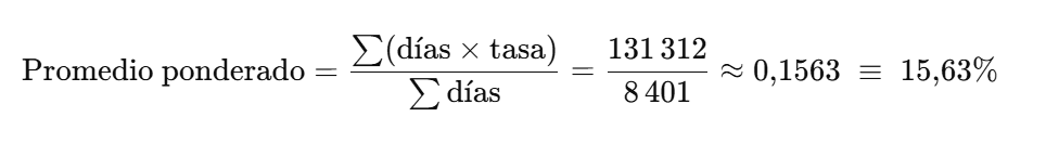 | Periodo | Días de vigencia | Tasa (%) | Producto (Días × Tasa) |